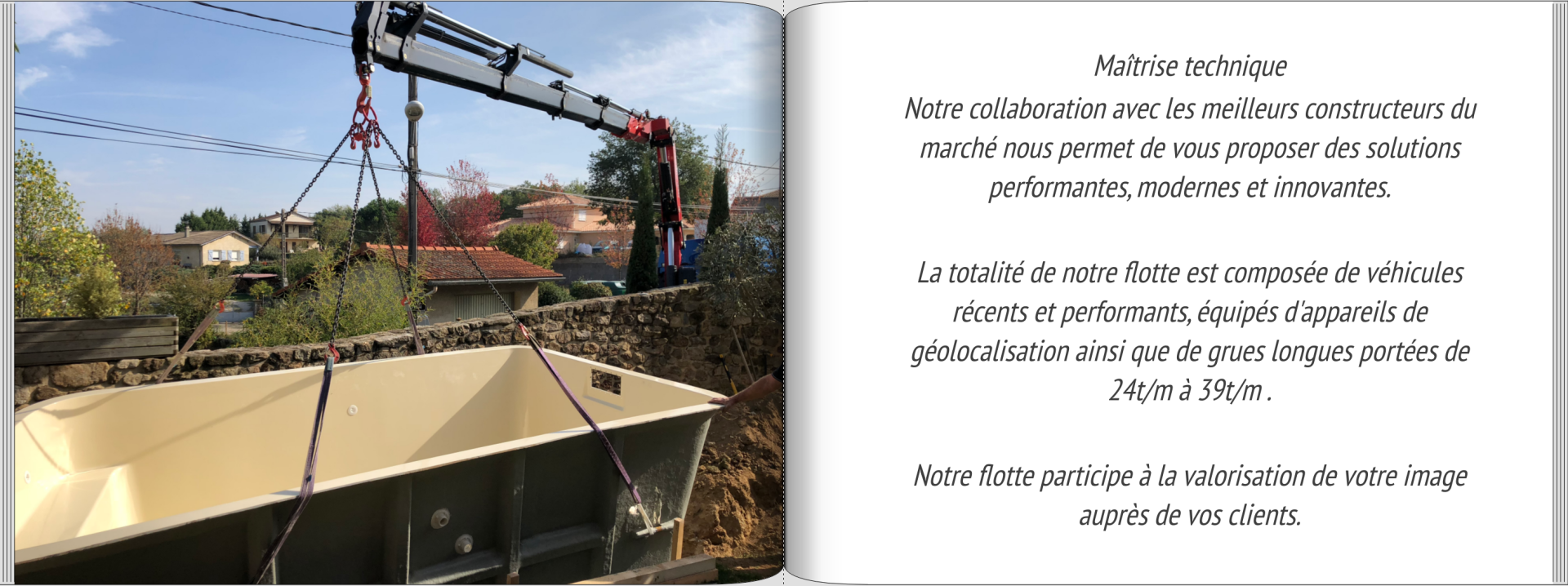 Spécialiste des prestations de transports et de manutentions de piscines et de colis grands volumes.